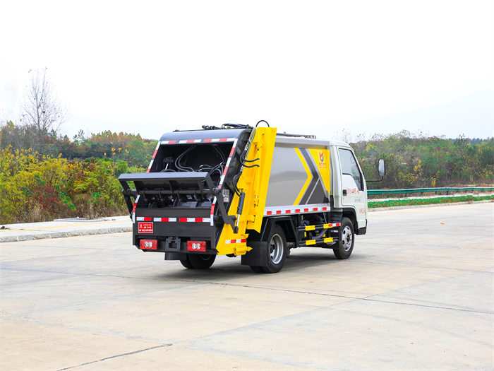 國六凱馬藍牌4.5方壓縮垃圾車凱馬藍牌壓縮垃圾車容積可達4.5方,實際裝載生活垃圾達60余桶,壓縮比高.●箱體外觀為圓弧...