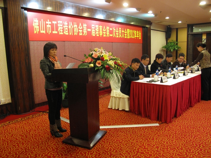 2012年11月29日下午,佛山市工程造價協會在佛山賓館隆重召開了佛山市工程造價協會第一屆理事會第二次會員大會暨2012年年會,共有52家會員單位代表出席了會議。嚴偉鋒會長代表第一屆理事會在大會上作了題為《求真務實·和諧發展·開創協會新局面》的工作報告,報告中總結了協會一年來的工作和未來一年的工作展望,與會代表對工作報告表示欣慰和肯定。會議上馮潔瑩秘書長匯報了2011年度的財務執行情況;陳敏珊副會長宣讀了新會員名單,對新會員的加入表示熱烈歡迎;孫康全副會長、曾東副會長宣讀了《佛山市工程造價協會會員管理辦法》和主持了對《佛山市工程造價協會會員管理辦法》的施行進行了投票表決,根據投票結果,參加投票表決的會員單位共52家,全票通過《佛山市工程造價協會會員管理辦法》,大會宣布《佛山市工程造價協會會員管理辦法》即日起施行。
