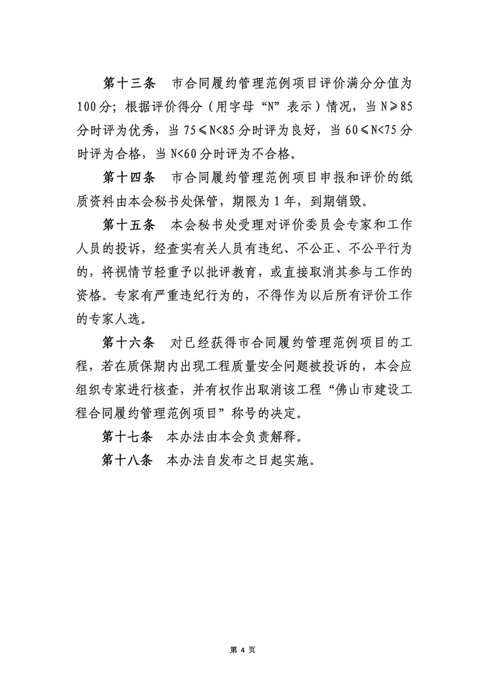 關于公布《佛山市建設工程合同履約管理范例項目評價辦法(2025年修訂版)》的通知