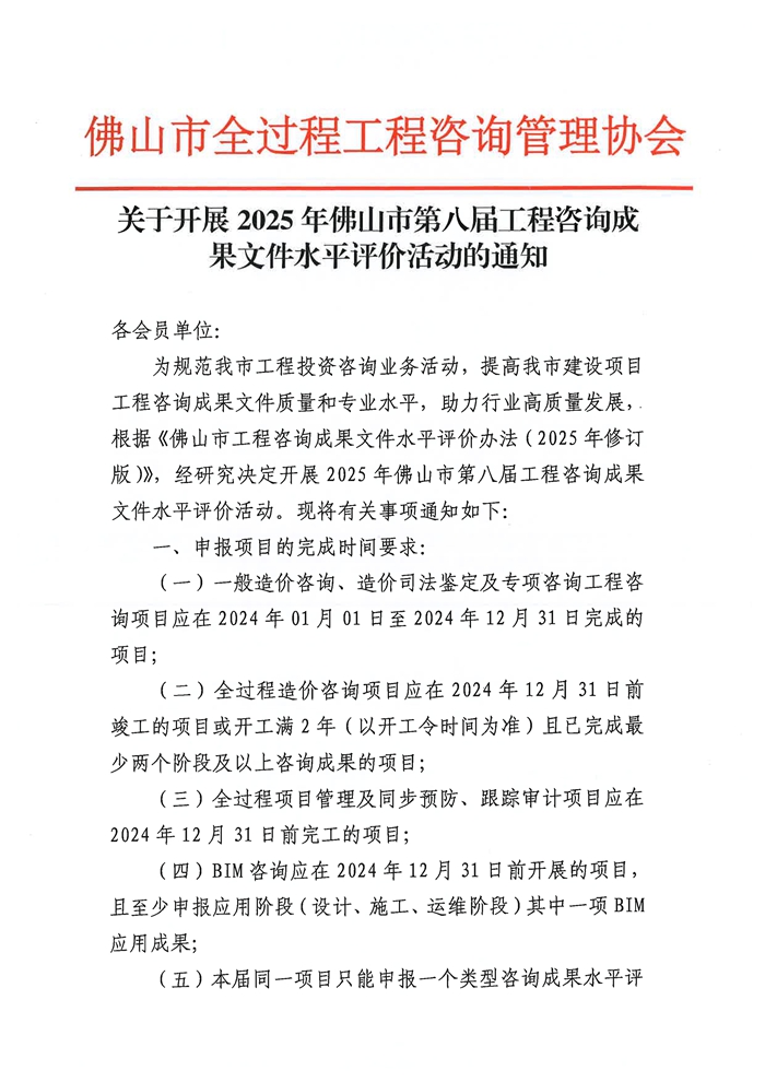 關(guān)于開展2025年佛山市第八屆工程咨詢成果文件水平評價活動的通知