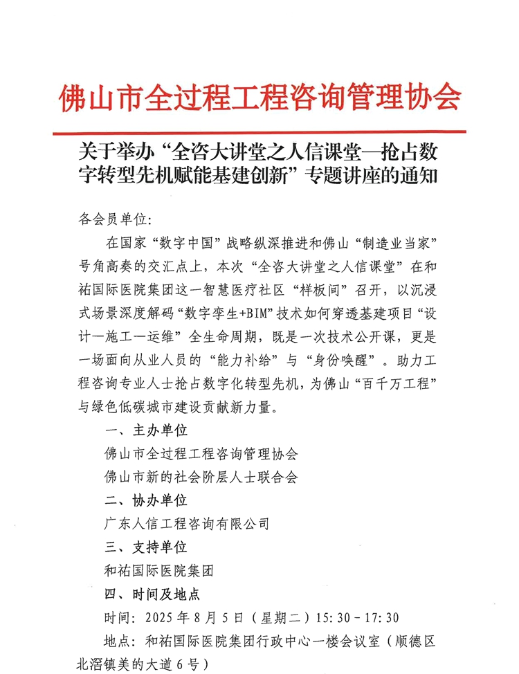 關于舉辦“全咨大講堂之人信課堂—搶占數字轉型先機賦能基建創新”專題講座的通知