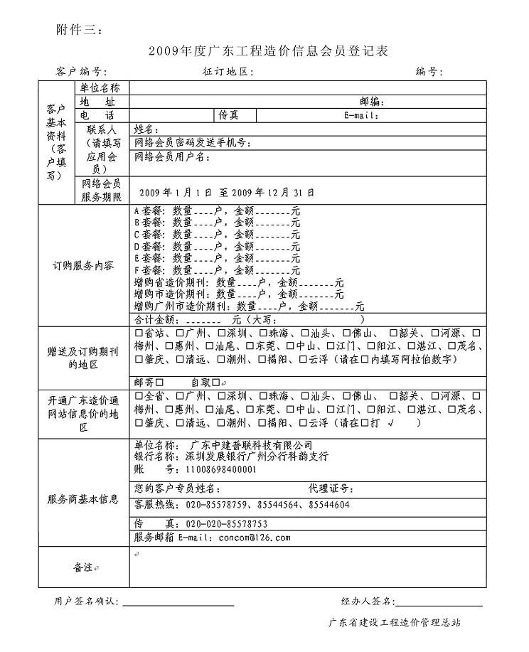 附件二:2009年度廣東工程造價信息會員登記表.doc